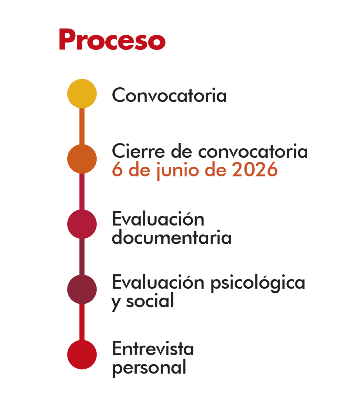 - Proceso. El proceso de evaluación y selección durará aproximadamente 8 semanas