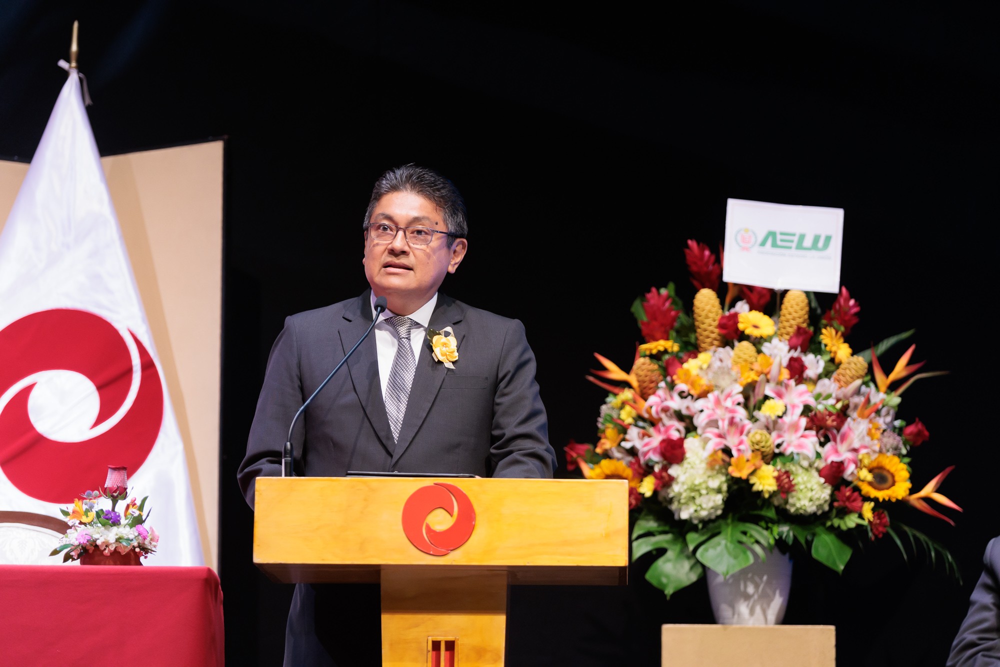 Luego de entonar el Himno Nacional del Perú y el Himno Nacional de Japón, la ceremonia continuó con las palabras del presidente saliente, Jorge Igei Ikehara, quien agradeció a todo el equipo que lo acompañó durante su periodo. Además de destacar los diversos proyectos emprendidos, señaló que “nos propusimos impregnar una cultura de okagesamade, en gratitud al legado de los inmigrantes japoneses y de todos quienes nos precedieron, cuyas enseñanzas nos han inspirado a trabajar con esfuerzo y asumir los desafíos de nuestra comunidad nikkei y de la sociedad, las cuales nos han permitido lograr lo que somos y lo que logramos”, dijo.