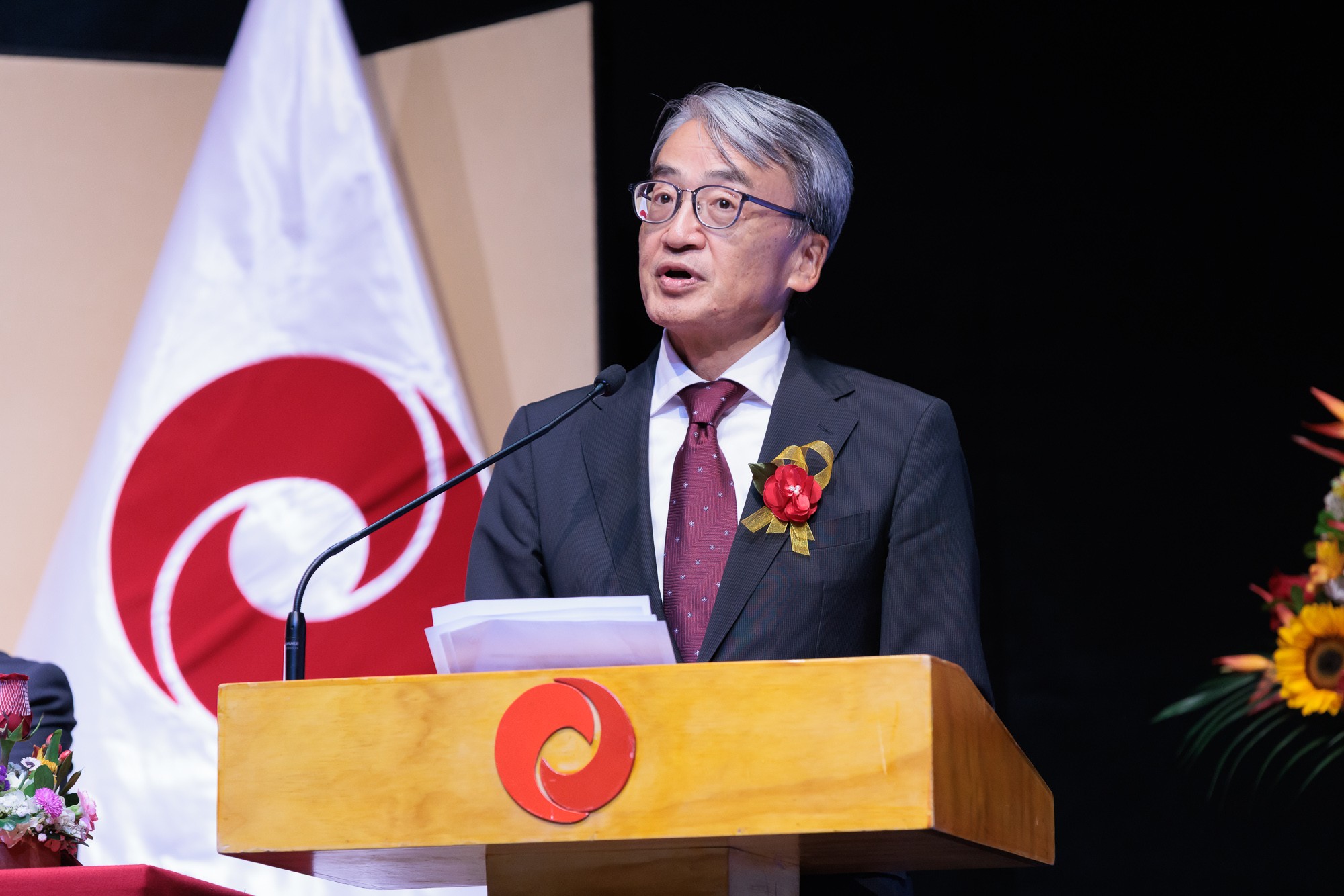 La ceremonia protocolar concluyó con las palabras del embajador del Japón, Tsuyoshi Yamamoto, quien agradeció a Jorge Igei, presidente saliente, y a los miembros de su directiva por su dedicación y liderazgo durante su gestión. Mencionó la realización de programas como Kenkō en Casa, Siempre Genki Integral y la realización del Seminario Latinoamericano para Colegios Nikkei, así como la campaña “Orgullosamente peruano, soy nikkei”. Sus acciones, dijo, “han dejado una huella muy significativa en esta institución.