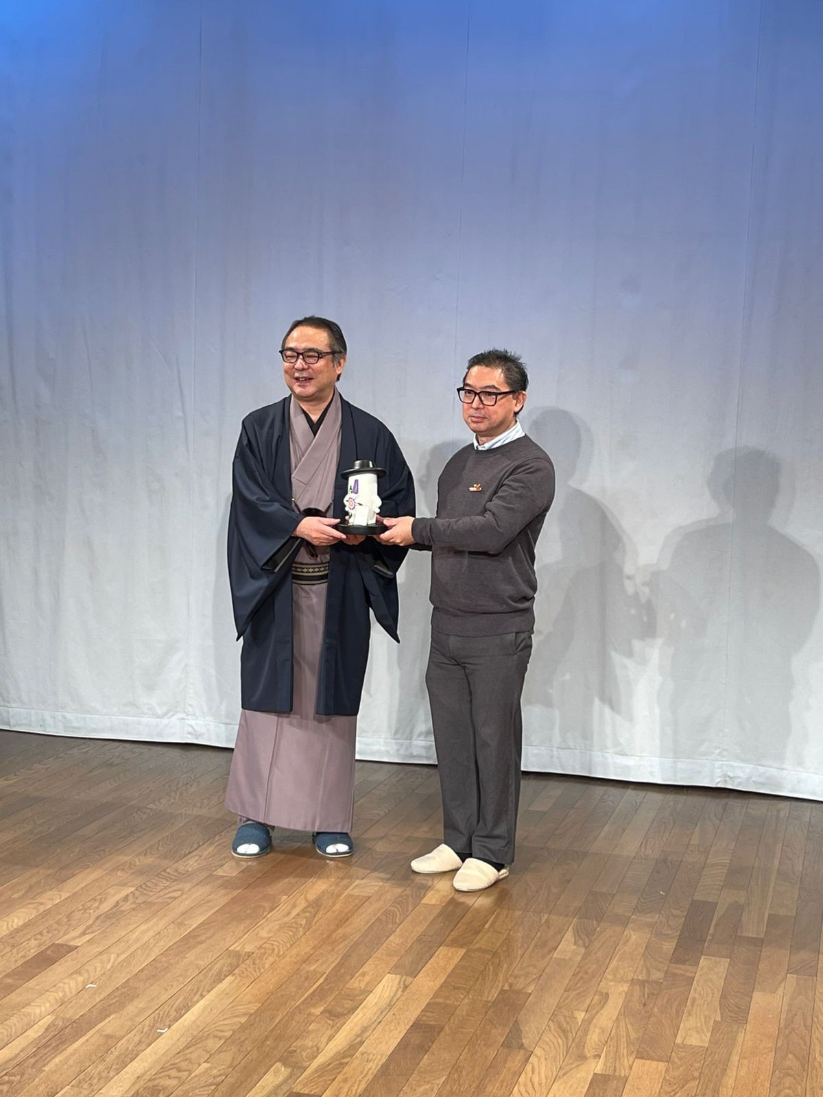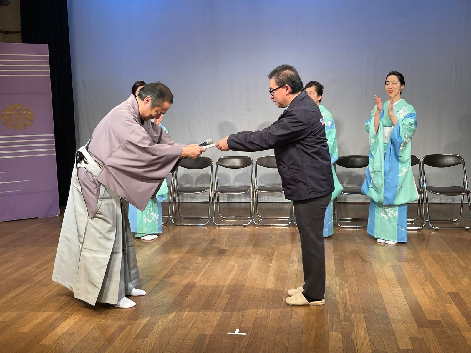 En representación de la APJ, Kenji Tenguan entregó al director de la compañía Kikunokai, Satoshi Hata, un obsequio, consistente en un “Tama” con motivos peruanos y reiteró el agradecimiento del elenco y de la APJ por haber sido parte del festival, y por el fructífero convenio gracias al cual Kikunokai APJ Nihon no odori continúa mejorando y profesionalizando las presentaciones que realizan.