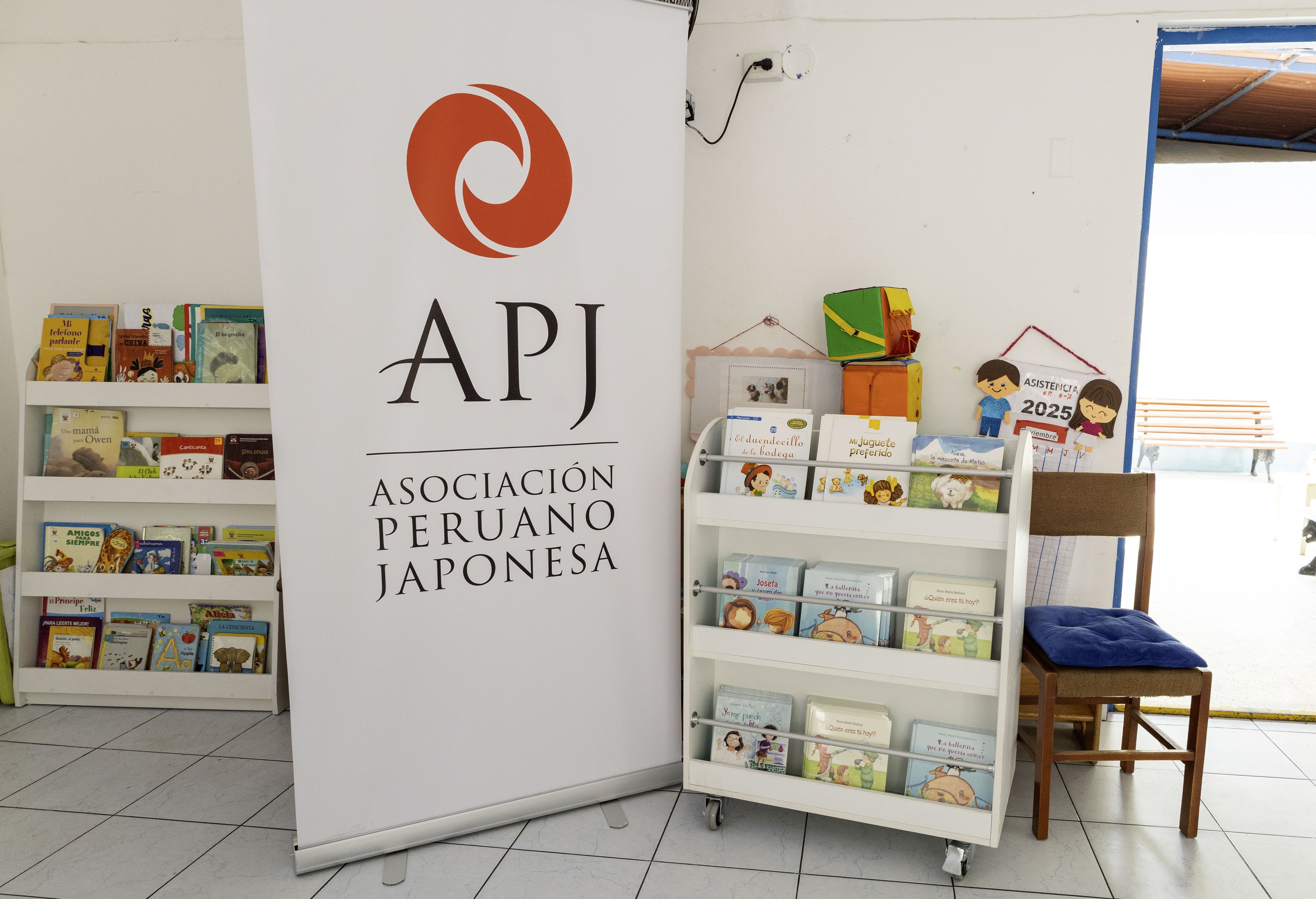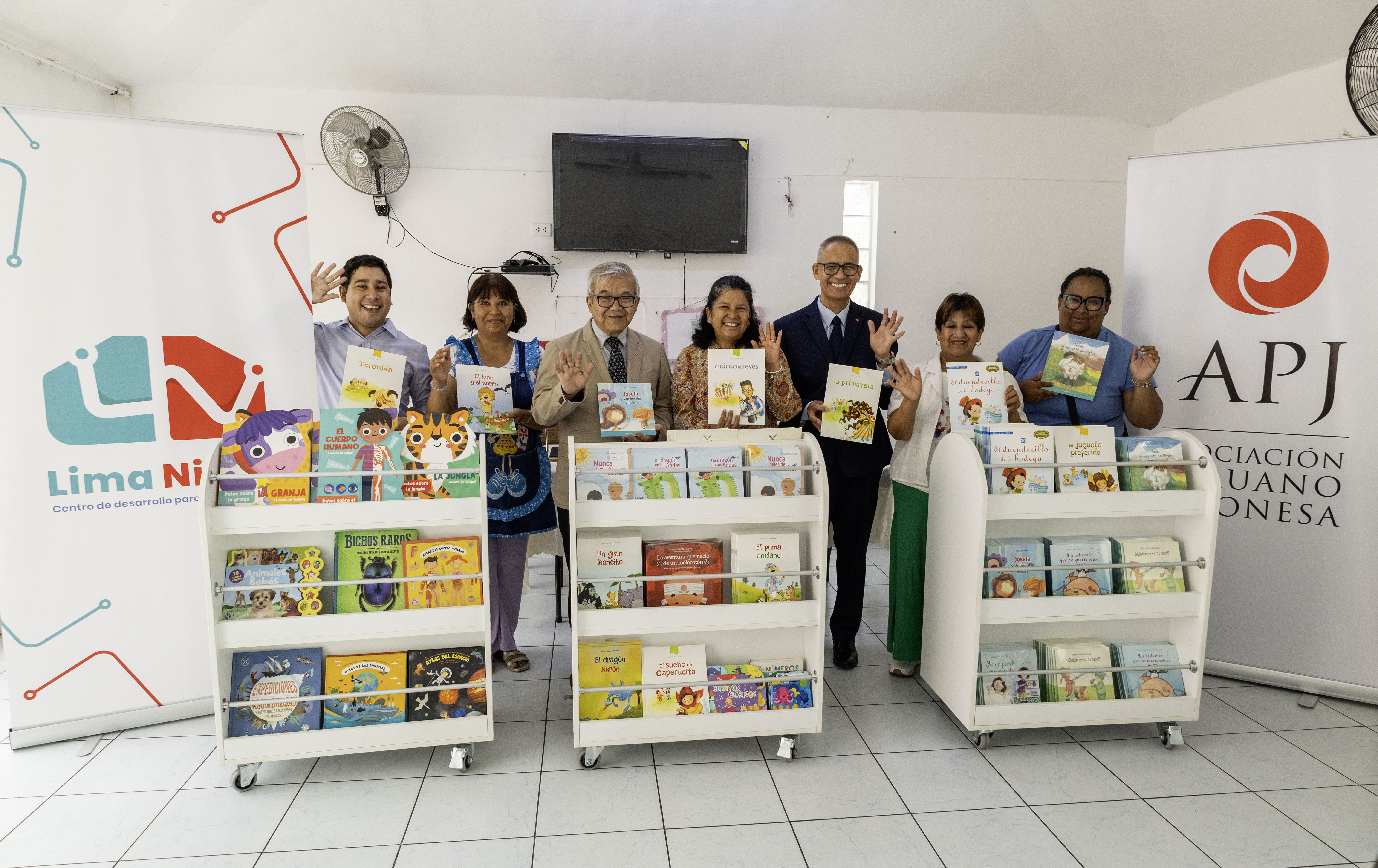 La Asociación Peruano Japonesa (APJ), a través del Centro de Desarrollo para la Educación (CDE) “Lima Nikko”, realizó la donación de 547 libros de literatura infantil y material educativo, así como 3 exhibidores móviles para biblioteca escolar, a la IEI 091 Señor de los Milagros, institución pública de nivel inicial ubicada en la residencial San Felipe, Jesús María.