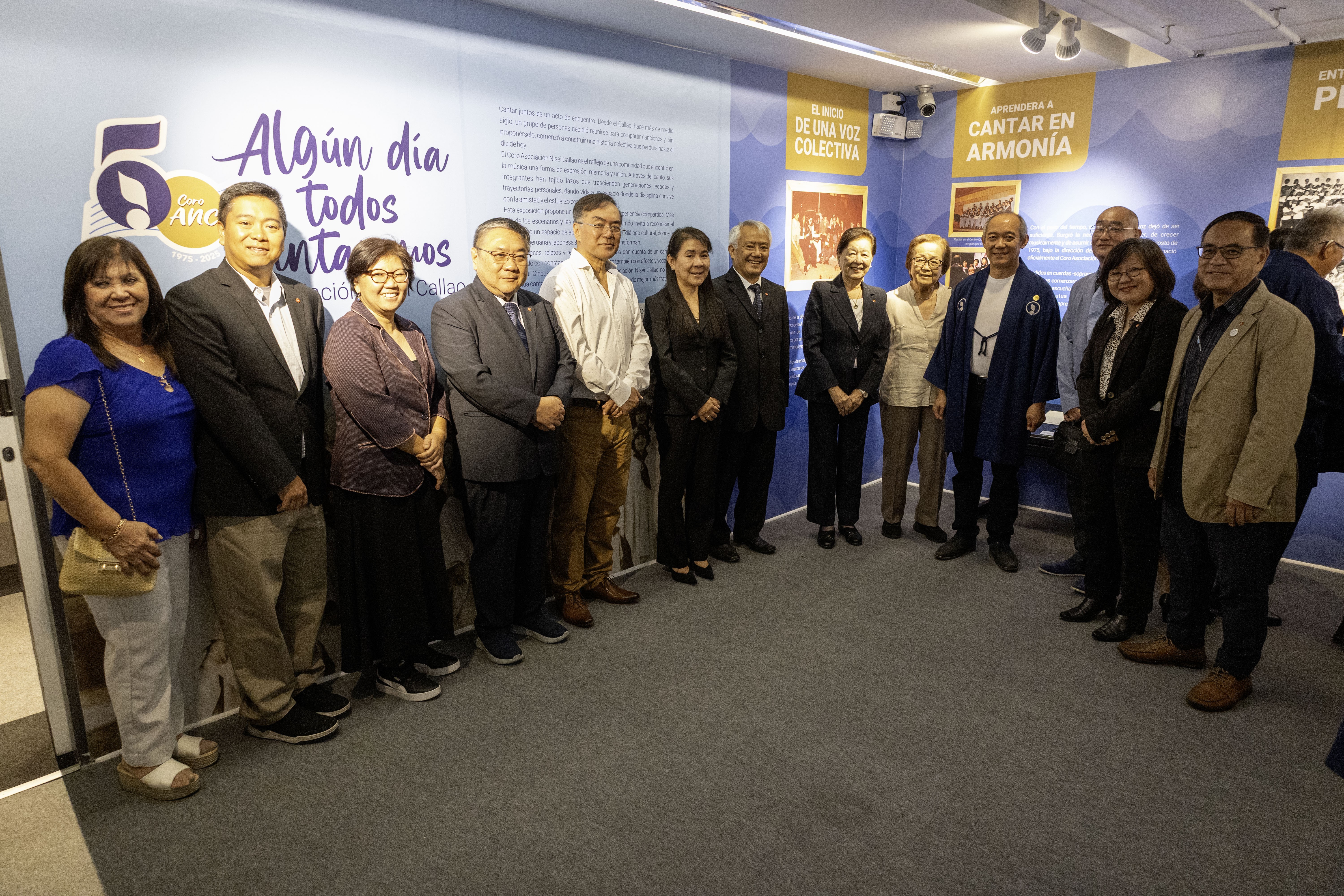 El jueves 9 de abril, la Asociación Peruano Japonesa (APJ) inauguró la exposición “Algún día todos cantaremos”, una propuesta que rinde homenaje a la trayectoria del Coro Asociación Nisei Callao (ANC) y su aporte cultural durante más de cincuenta años. La muestra estará abierta al público hasta el 27 de abril en la sala de exposiciones temporales del Museo de la Inmigración Japonesa al Perú “Carlos Chiyoteru Hiraoka”.