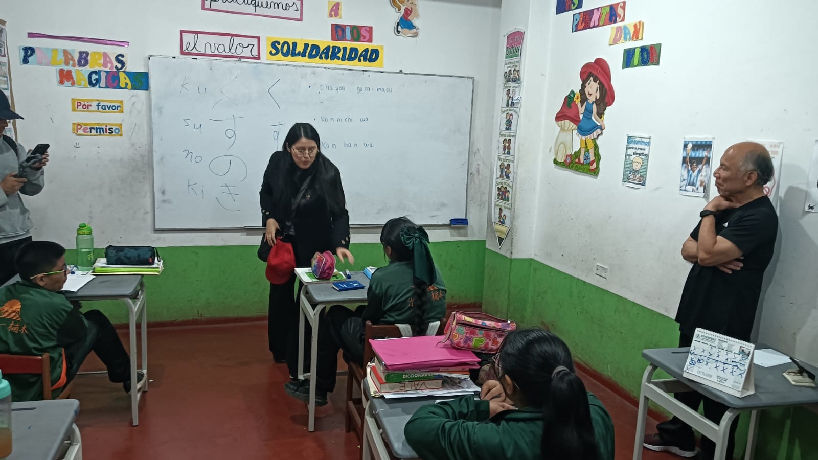 Durante el recorrido, fueron recibidos por el director, Luis Kusunoki, quien lidera la implementación del curso de idioma japonés en el colegio. Actualmente, el centro imparte nociones básicas de hiragana y vocabulario a un grupo de cuatro estudiantes de quinto y sexto de primaria.