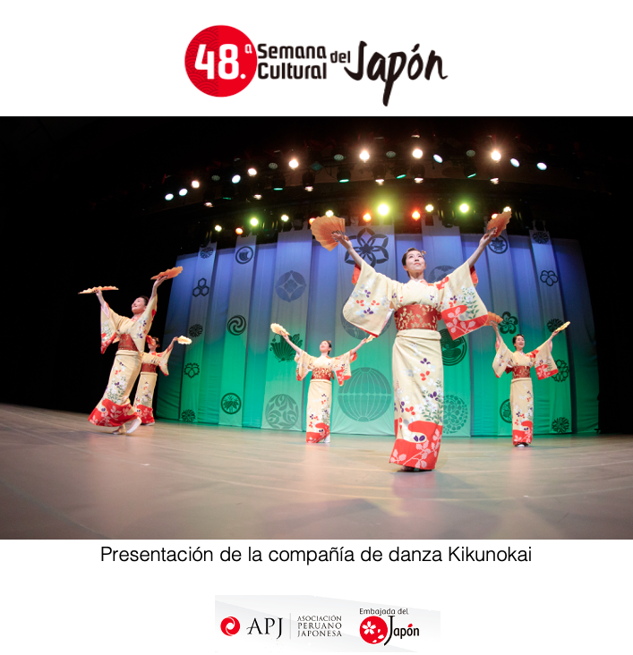 El elenco de la prestigiosa compañía Kikunokai de Japón nos presentará un repertorio de danzas tradicionales de las diversas regiones y provincias del Japón, así como creaciones y adaptaciones propias. Esta compañía ha presentado espectáculos en Europa, Asia, África, el Medio Oriente y Oceanía. En 2017 visitaron el Perú.