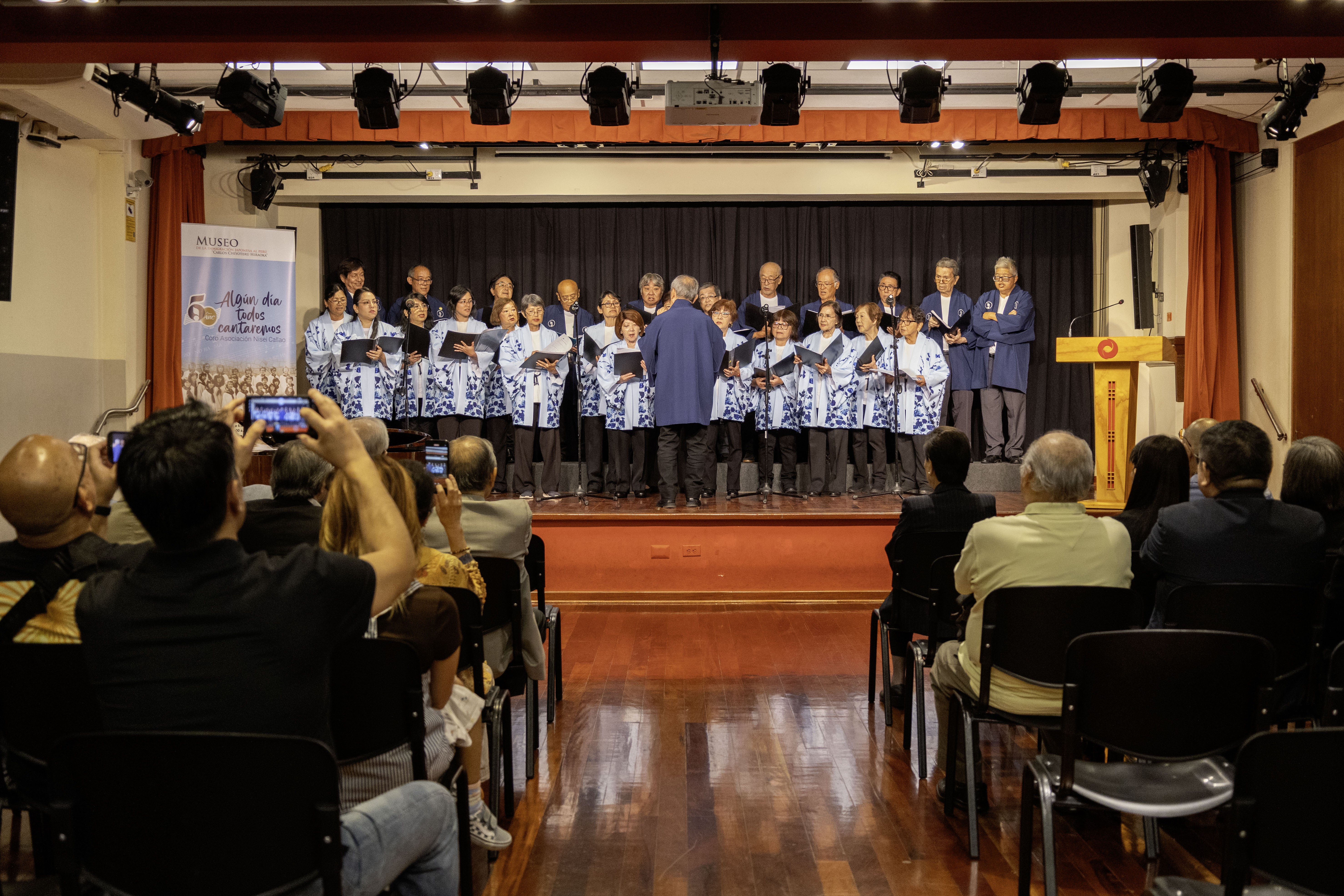El jueves 9 de abril, la Asociación Peruano Japonesa (APJ) inauguró la exposición “Algún día todos cantaremos”, una propuesta que rinde homenaje a la trayectoria del Coro Asociación Nisei Callao (ANC) y su aporte cultural durante más de cincuenta años. La muestra estará abierta al público hasta el 27 de abril en la sala de exposiciones temporales del Museo de la Inmigración Japonesa al Perú “Carlos Chiyoteru Hiraoka”.